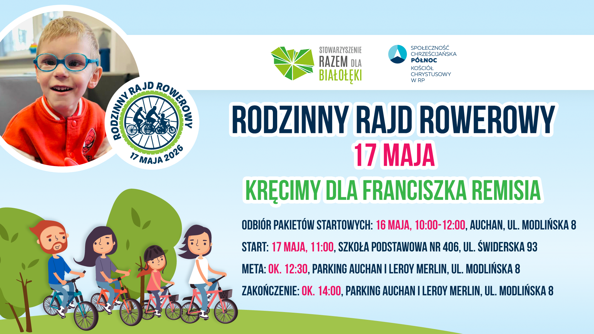 17 maja 2026 r. odbÄdzie siÄ juĆŒ Ăłsma edycja Rodzinnego Rajdu Rowerowego, organizowanego przez Stowarzyszenie Razem dla BiaĆoĆÄki i SpoĆecznoĆÄ ChrzeĆcijaĆskÄ