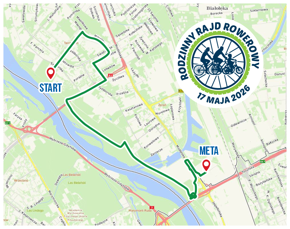 Rodzinny Rajd Rowerowy odbywa siÄ pod patronatem Burmistrz Dzielnicy BiaĆoĆÄka â Anny Majchrzak i MarszaĆka WojewĂłdztwa Mazowieckiego â Adama Struzika.
